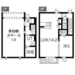 ◆Aタイプ:1階1LDK、Bタイプ:2階1LDK、